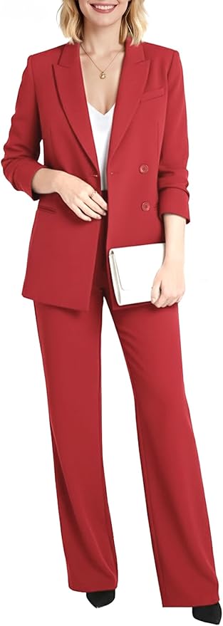 A coordinated suit set offers a structured and elegant option for formal or semi-formal looks.